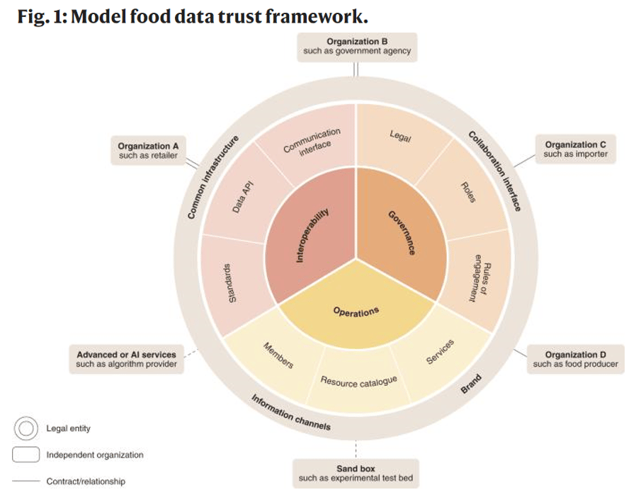 See the proposed framework in 'Fig.1:Model food data trust framework' below.